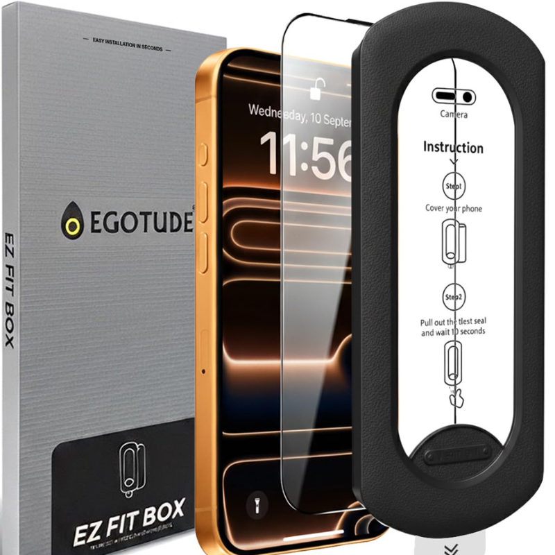 EGOTUDE for iPhone 17 Pro Max Tempered Glass 9H Hardnes Edge-To-Edge Coverage Screen Guard Protector with Easy Fit Auto Dust Removal Kit